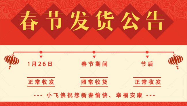 关于每年例行的春节前发货的通知 公告小飞侠速递09/01/2024关于每年例行的春节前发货的通知: 如果,航班无延误, 1/26/2024 抵达仓库的包裹,大部分可以在年前顺利交付顺丰进行尾程派送。当然还是老规矩, 重名件, 滞留件,身份证不完整, 等,一切问题件包裹不计…